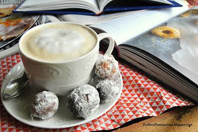 **z tych proporcji wychodzi ok.30- 40 pączusiów wielkości orzecha, nie jest to duża porcja-taka akurat do kawy z przyjaciółką. Można zwiększyć proporcje, ale pączusie najsmaczniejsze są świeżo zrobione.