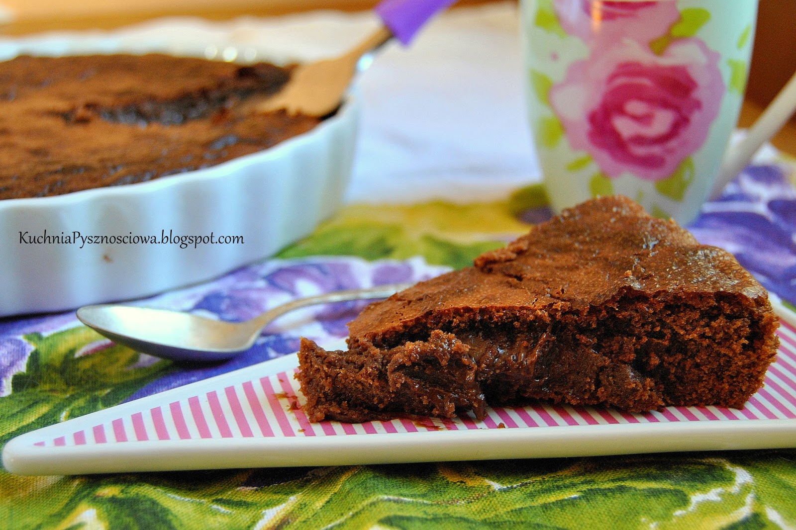 Jak zwykle nawet nie zwróciłam w ogóle uwagi na to, że blog miał swoje urodziny. Tyle się dzieje w moim życiu kury domowej, że no naprawdę nie ogarniam. Więc jak już się wzięłam i zorientowałam to jednak postanowiłam coś miłego dla podniebienia upiec. Padło na ciasto naprawdę bardzo czekoladowe. Wybitnie fotogeniczne nie jest, bo się środek rozpływa, a tylko na zewnątrz jest chrupka skorupka. Dlatego polecam zrobić je w jakimś ładnym naczyniu i ewentualnie łyżką wyjadać, bez bawienia się w przenoszenie na talerz.