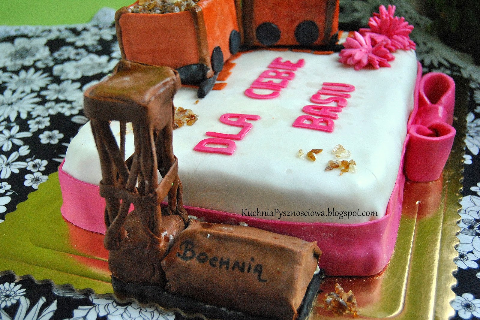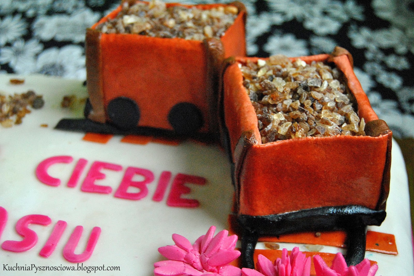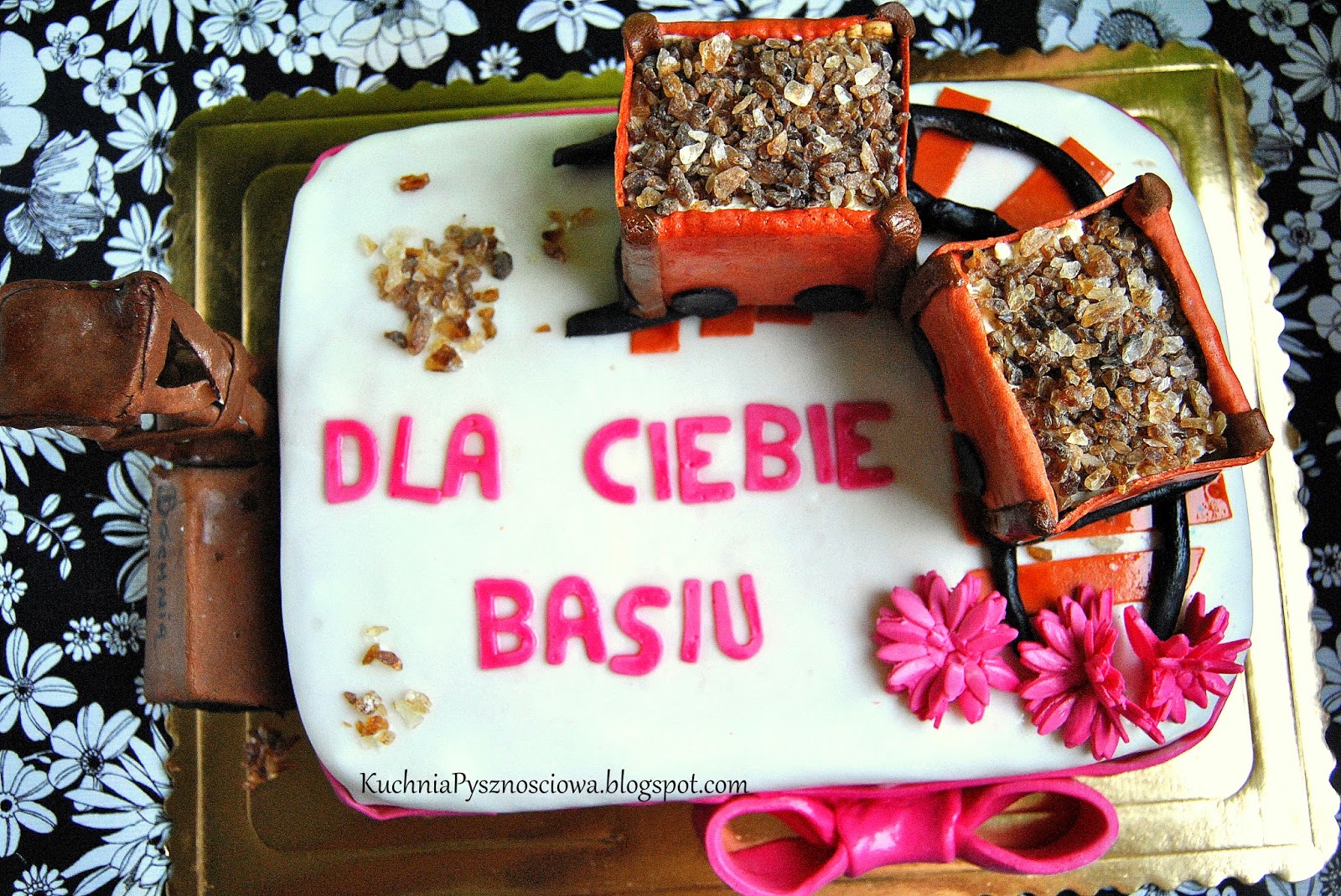Wczorajsza Barbórka to jak wiadomo święto górników. Tak się akurat złożyło, że mogłam się wyżyć artystycznie z tej okazji i ulepić kopalnię. Co prawda kopalnia była nie węglowa, tylko wydobywana jest w niej sól. Bo tak ogólnie to kopalnia soli z Bochni jest jakby ktoś nie wiedział. Tort zaś był prezentem niespodzianką (w parze z imprezą niespodzianką) dla pewnej Basi.